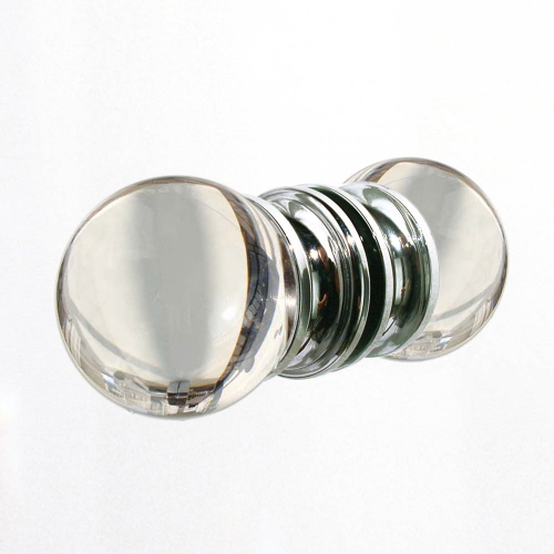 Türknöpfe für Glastüren bis 12 mm Glas. Die Türknöpfe aus transparentem Glas beinhaltet ein chromplattiertes Messingrohr.