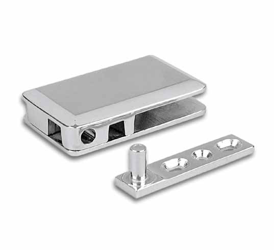 Glastürscharniere für Glastüren von 6 mm bis 8 mm Glas, aus Messing verchromt, rechts und links verwendbar. Vorteilhaft bei diesen Glastürschaniere ist, dass sie einen Großteil des Gewichts auf den Boden übertragen und dementsprechend für hohe Traglasten geeignet sind.