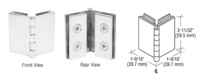 Türscharniere für Glas an Glastüren. Die rückschwingende Doppelscharniere sind für Glas-Glas-Montagen geeignet.